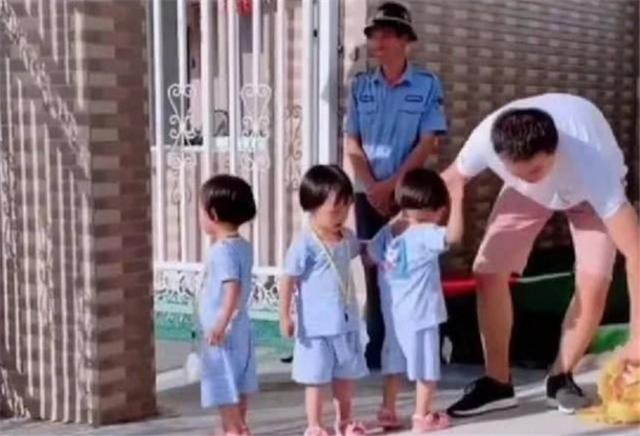 这天,宝爸手头的工作耽误了一些时间,虽然他紧赶慢赶,还是来晚了十分钟。当他到达幼儿园时,其他孩子早早就被接回家,只剩下这三胞胎女儿站在幼儿园门口,朝着宝爸接送的方向张望。