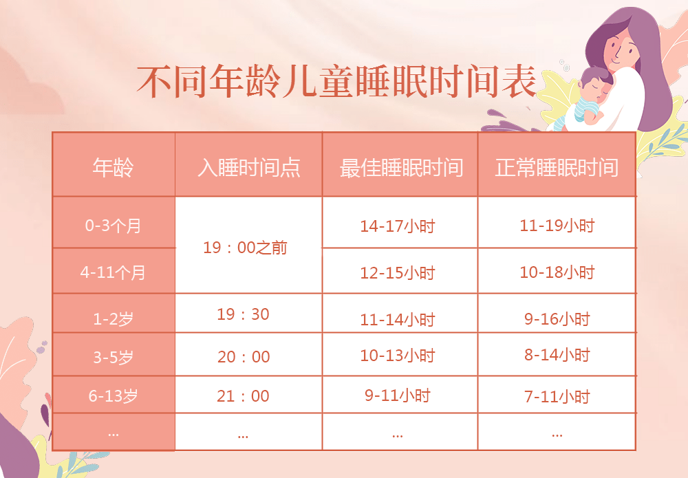附上不同阶段孩子的睡眠时间表供家长们参考哟: