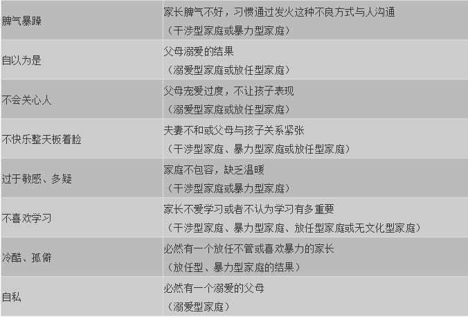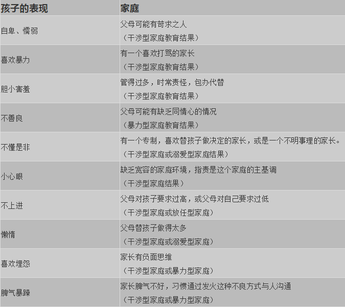 一张表看明白,每个孩子的毛病背后是父母的教育缺陷!