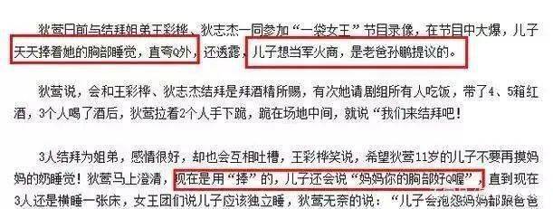 甚至狄莺一直和儿子同床睡了15年,还让儿子摸着她的胸来睡,直到儿子和她一起睡会有生理反应,她才意识到,孩子长大了,该分房了。