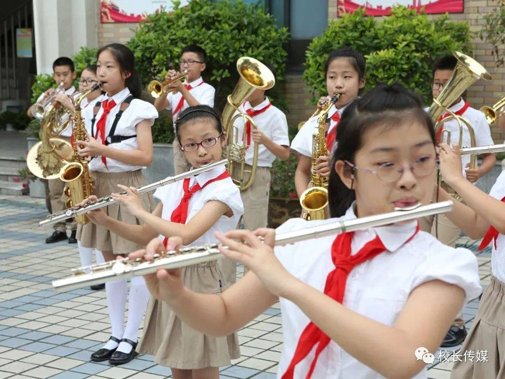 歌词的第一句既点出校名,也写出了朝实校园的特点,阳光特别充足,即便你走上楼梯,暖暖的阳光也能从窗格的缝隙间透射进来。第三句写两校区的特色,一校区是“一本书”,书声朗朗,朝夕书吧让小而精致的校园充满浓浓的书香味儿。五校区是“一首歌”,坚持了30年的小金号管乐团平时都在五区训练,悠扬的乐曲丰盈了孩子们的年少时光。第二段第一句“杏波漾漾,浪漫芬芳”写的是学校边上被誉为杭城最美的银杏林,后三句是对朝实学子的期待,做心中有爱,眼里有光,温暖善良,全面发展的新时代好少年。第三段的第一句,由远及近,从校外的银杏树林到校内高大的桂花树,玉颗珊珊,袅袅花香,写得就是桂花香。校园里这么多的树木和花,为什么只写桂花?那是因为桂花的花语非常符合朝实校园的品格。有花香,有书香,校园自然是美的。时不我待,只争朝夕,这是学校的校训。厚积才能薄发,腹有诗书气自华,让优秀传统文化夯实孩子们的根基,朝晖实验小学培养的孩子要有文化底蕴,要有家国情怀,要有国际视野,一身正气,气宇轩昂,能很好地适应未来社会发展的需要。正如褚宏启教授说的,未来的高素质人才要有健康的身,聪明的脑,还要有一颗温暖的心。