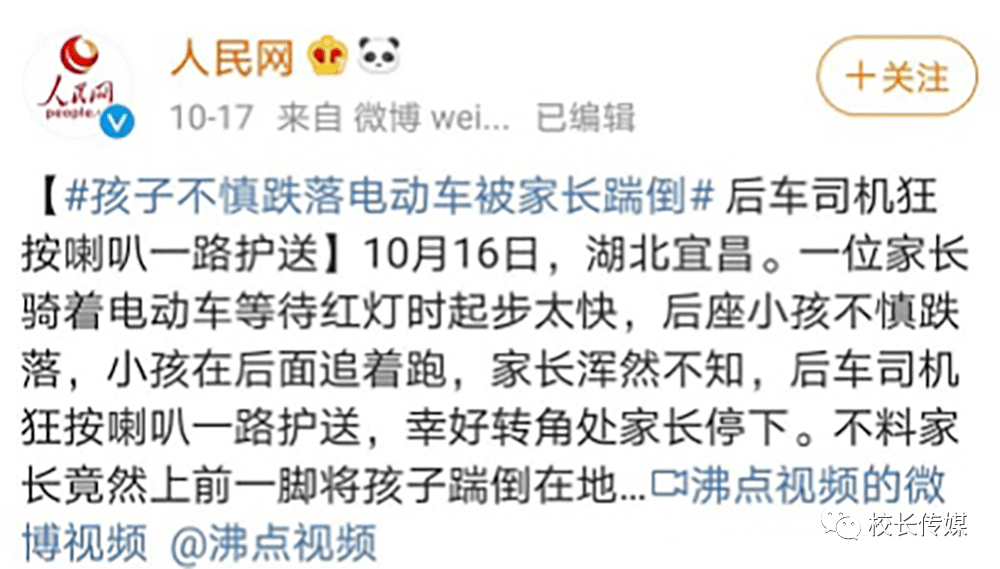 前段时间微博上有个被刷屏的热点视频:#孩子不慎跌落电动车被家长踹倒#