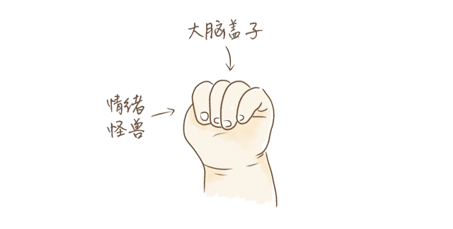 《正面管教》里一个挺形象的理论——″掌心大脑″,清晰又简单地演示了当情绪来临的时候,大脑是如何丧失理智的。