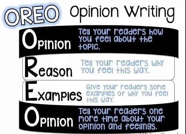 什么是观点写作Opinion Writing呢?它可以总结成一块奥利奥饼干——Oreo。