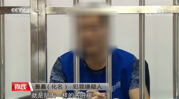 “就是像正常朋友一样开房,她同意了,就把衣服脱了嘛。”尽管已被抓捕归案,面对记者,张晨依然没有表现出忏悔之意。