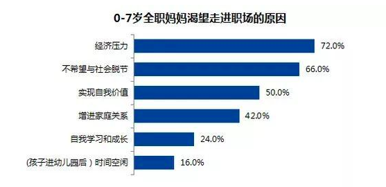 根据智联、宝宝树以及全球化智库(CCG)对中国职场妈妈的调研,有娃的女性走入职场,一方面是因为家庭经济压力,另一方面也是想实现更多的个人价值,更大程度的参与社会经济活动。