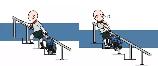 ○ 拉杆书包虽然解放了孩子们的双肩,但是也存在一些缺陷。孩子们如果拉着书包在路上打闹很容易被拉杆绊倒。长期用一边手拉拉杆也会导致用力不对称,影响脊椎、肌肉和骨骼的发育。