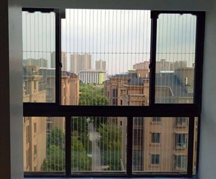 这种防护窗的垂直间距非常小,而且视线相对来说比较好。基本上都是不锈钢丝或者铝合金丝制成的,单根受力重达100斤以上,很适合有宝宝的家庭安装。