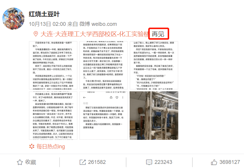 前天,大连理工研三的一位男生,在实验室结束了自己的生命。