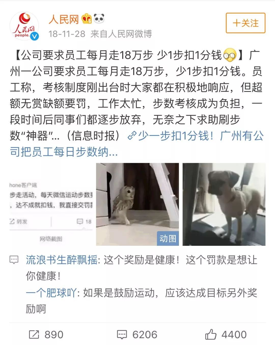 公司要求员工每月走18万步,少1步扣1分钱。