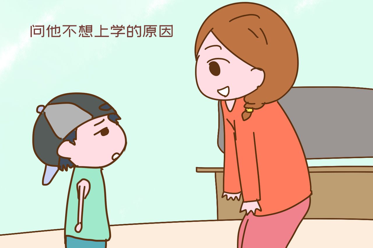 ①接纳孩子不想上学的情绪,问他不想上学的原因。孩子不想上学,家长不要做出太多情绪上的反映,可以先问孩子“为什么?”或者问他“在学习上遇到什么难处?”方便对孩子问题的进一步解决。