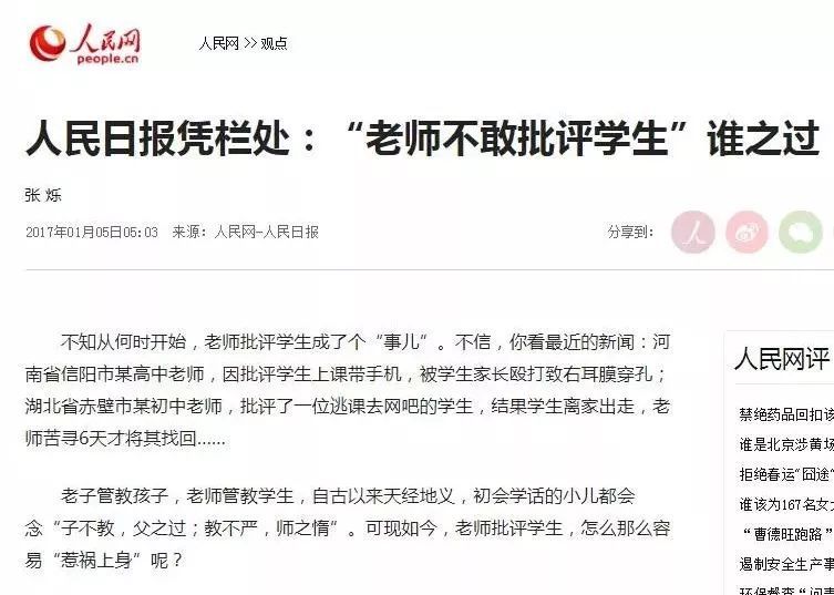 人民日报曾经刊文:“老师不敢批评学生”谁之过