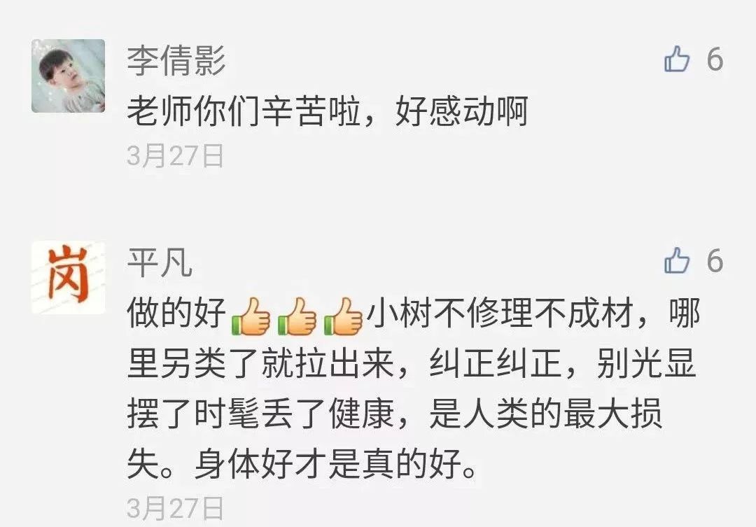 为了同学们的健康,学校一方面通过班会进行正面引导,一方面组织老师检查督导。同时,在学校微信公众号中发布一篇《孩子,请放下你的裤腿》的文章。