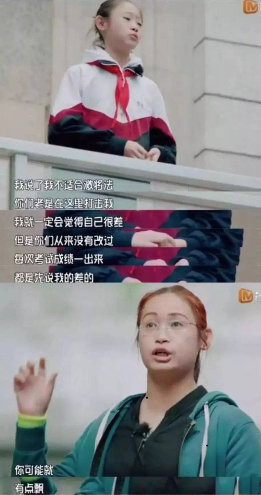 还有一个女学霸,情绪激动流着泪说妈妈总是使用激将法打击自己,永远只会说自己有多差。
