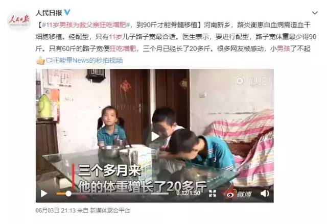 吃胖了才能给俺爸捐骨髓,才能救俺爸。