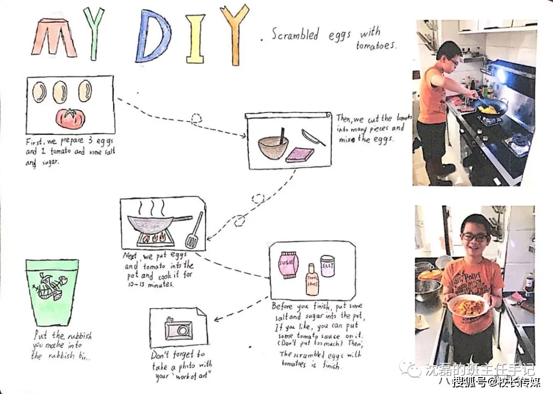 作业需要达成三个目标:1.明确自己为什么想做这个手工给家人;2.使用单元所学的目标语句写下制作的流程和自己的感受,最终以图文并茂的方式呈现DIY过程;3. 与家人分享时可直接表达自己对他们的爱。