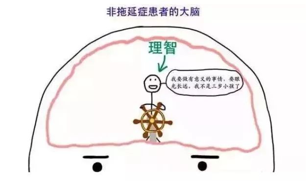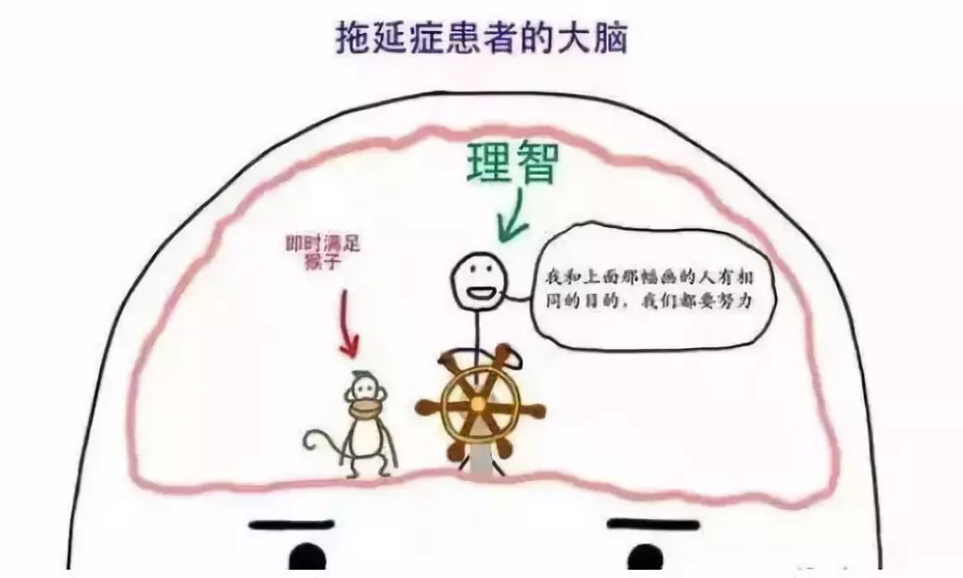 可以说拥有拖延症的人一定不是一位理性主义者,他们以情绪为主导,更看重即时的满足和享受(玩手机玩电脑、电视剧电影、八卦聊天等等),而不是更应该去实现的目标,如下图: