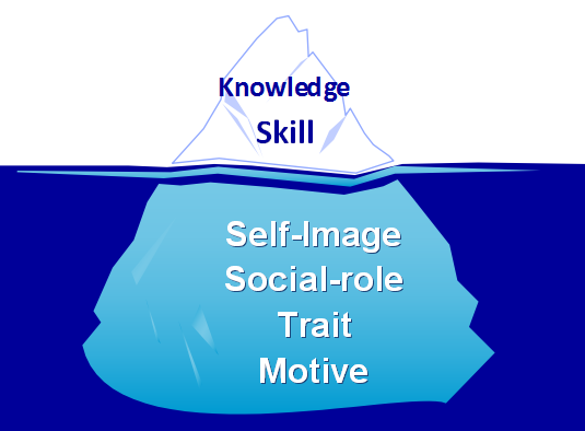下面这幅图是美国著名心理学家麦克利兰(McClelland)于1973年提出的冰山模型。