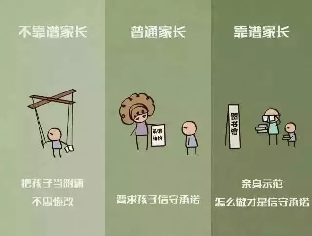 下面这些小漫画,通过一些日常生活中的小事,对比出不靠谱家长 VS 普通家长 VS 靠谱家长的区别,一起来了解一下吧。