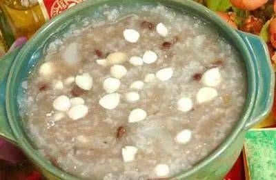 做法:先将荷叶煎汤去渣,把茯苓、洗净的粳米或小米加入药汤中,同煮为粥,出锅前将白糖入锅。