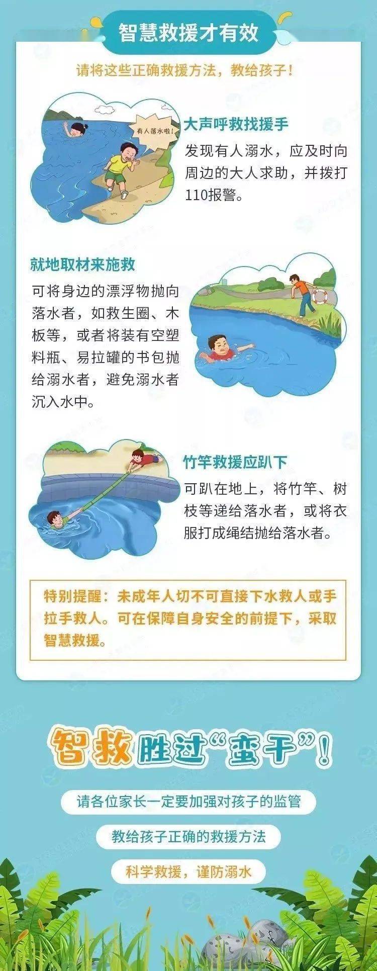 千万不能认为同伴落水,自己不跳下去救,就不够朋友!及时找大人帮忙才是救援成功率最高的方式,才是真正在帮助同伴!