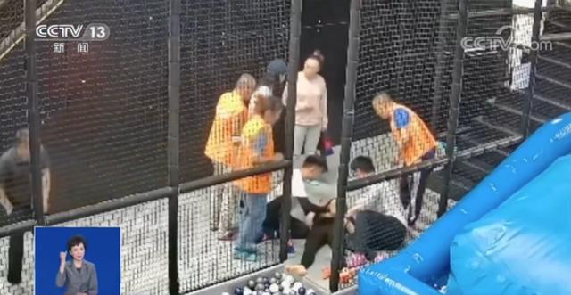 监控显示,女孩高高弹起后,头朝下猛地摔进了海洋球池内,当场动弹不得。