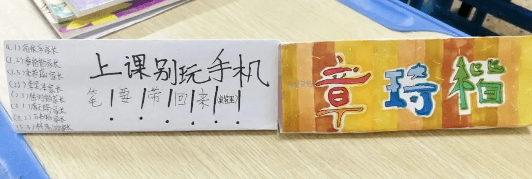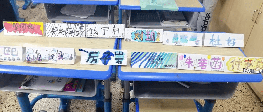 也是本月,浙江省杭州市闻涛小学召开家长会。501班的家长走进教室都一脸灿烂,因为课桌上放着一张张孩子们手绘的漂亮桌签,名字超醒目,轻轻松松找到座位。