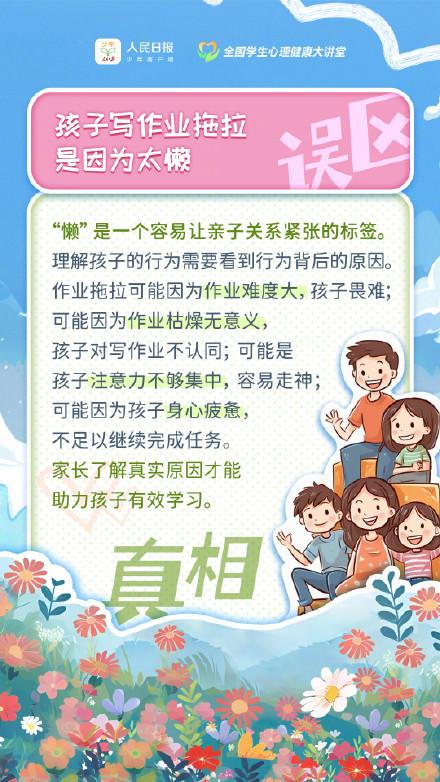 孩子写作业拖拉是因为太懒?孩子“厌学”是一种疾病?发现孩子说谎要直接戳穿?孩子出现情绪问题能够自愈?其实,这些都是儿童心理健康的常见误区。正值世界儿童日,共同关注孩子内心世界,用科学方法护航孩子健康成长!(人民日报少年客户端)