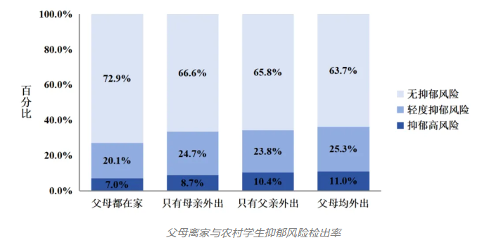 空间距离。父母长期外出、学生住校都会增加心理健康风险。父母均外出的学生抑郁高风险率最高。
