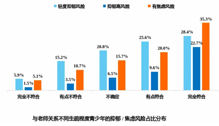1.师生关系好、班主任公平度高,青少年抑郁和焦虑风险更低