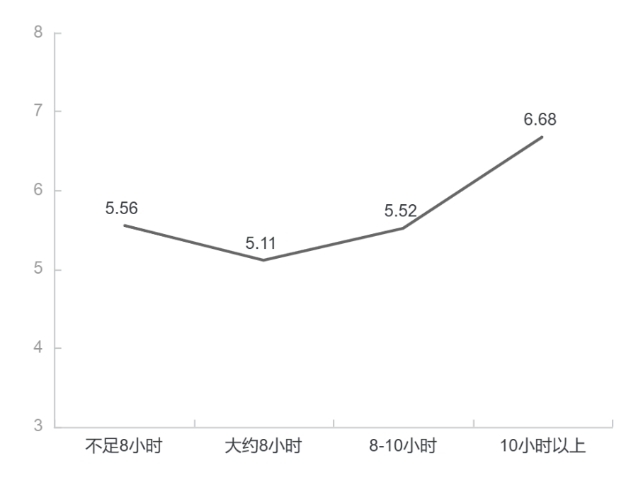 超长工作时间(日均超10小时)群体的抑郁水平较其他组别升高23%,印证了“过劳”对心理健康的侵蚀效应。