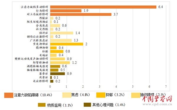 图1中国青少年主要心理健康问题发生率(%)