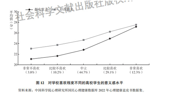 对于高校学生,影响人生意义感的主要因素是对学校和专业的喜爱,报告显示,高校学生对自己专业和学校的喜欢程度越高,人生意义的拥有和寻求水平也越高。一方面可能是具有明确人生意义和积极寻找人生意义的学生会努力进入自己喜欢的学校和专业,体现出人生意义感对学业的促进作用;而另一方面,可能是对学校和专业的喜爱让学生更加投入和归属,从而找到了人生意义。