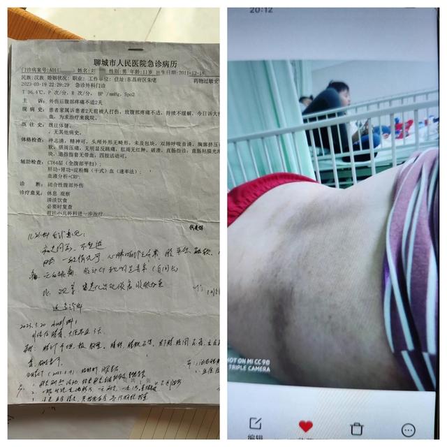 朱亮提供的孩子被打后诊断书和受伤照片(央广网发受访者供图)