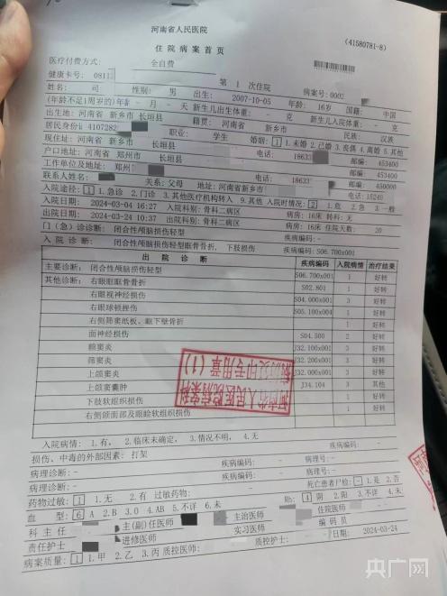 林兵介绍,今年2月,16岁的儿子就读于郑州市一所中专学校。2月28日,班级通知儿子前往一个教室,但孩子刚入学什么都不知道,问是否需要带本子,有个同学说了句“问那么多干什么?”,孩子说了句“要你管我!”