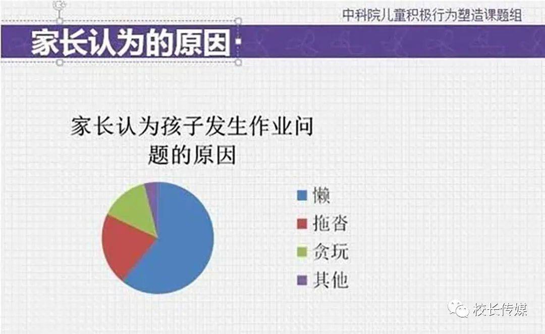 但是家长认为孩子做作业磨叽的原因依次是:1、懒,2、拖沓,3、贪玩,4、其他。