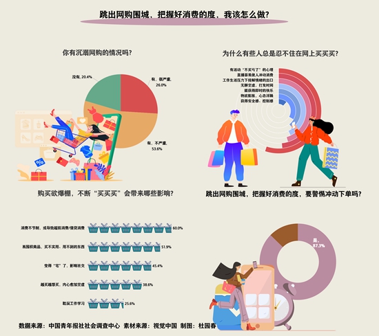 跳出网购围城,把握好消费的度,87.3%的受访者认为要警惕冲动下单。