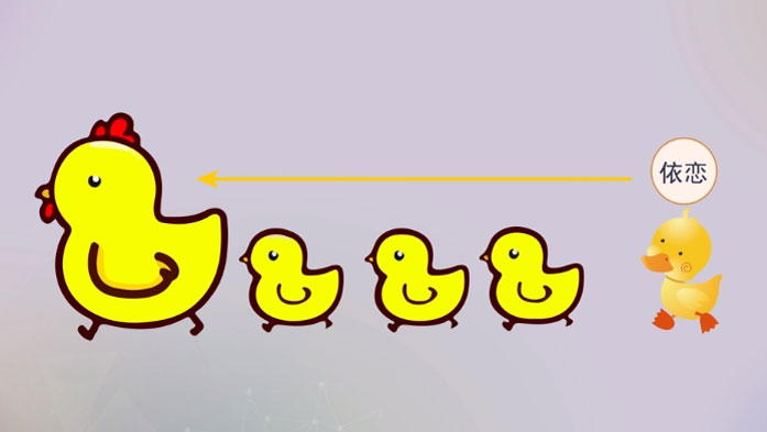 1910年,德国行为学家海因洛特做了一个有趣的实验。他发现,刚刚破壳而出的小鹅会本能地跟随在它第一眼见到的“母亲”后面。即使对方不是真的母亲,而是其他活动物体,比如一只狗、一只猫、一只玩具鹅甚至是一个人,它也会自动跟随。
