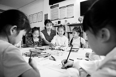 贵州省赤水市复兴镇新兴社区“童伴妈妈”辅导孩子们绘画。新华社发
