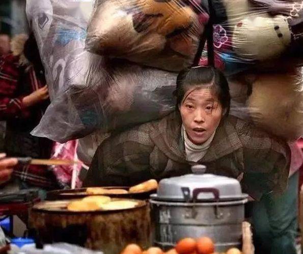 ▲ 这位妈妈靠卖毛绒玩具为生,每天要背着重货走街串巷,却连一块饼也舍不得买。