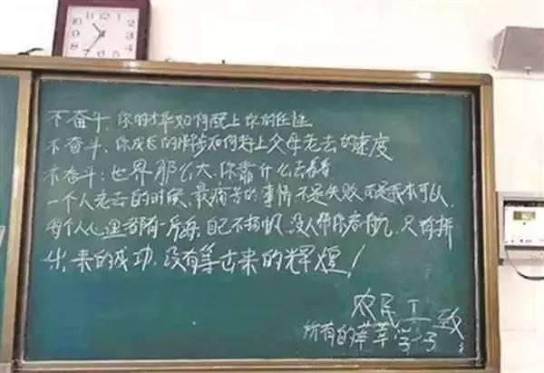 前年暑假,一位农民工在某中学暑期施工时,在教室黑板上写了这么一段话: