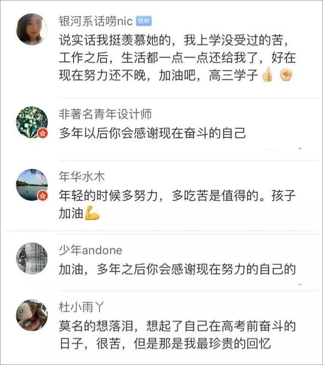 其实现在回过头来看,我更多的是遗憾,觉得当时没有尽力,如果再努力一点,也许就能上更好的大学。积极向上、努力靠近好的环境和优秀的人永远是对的。加油吧女孩。