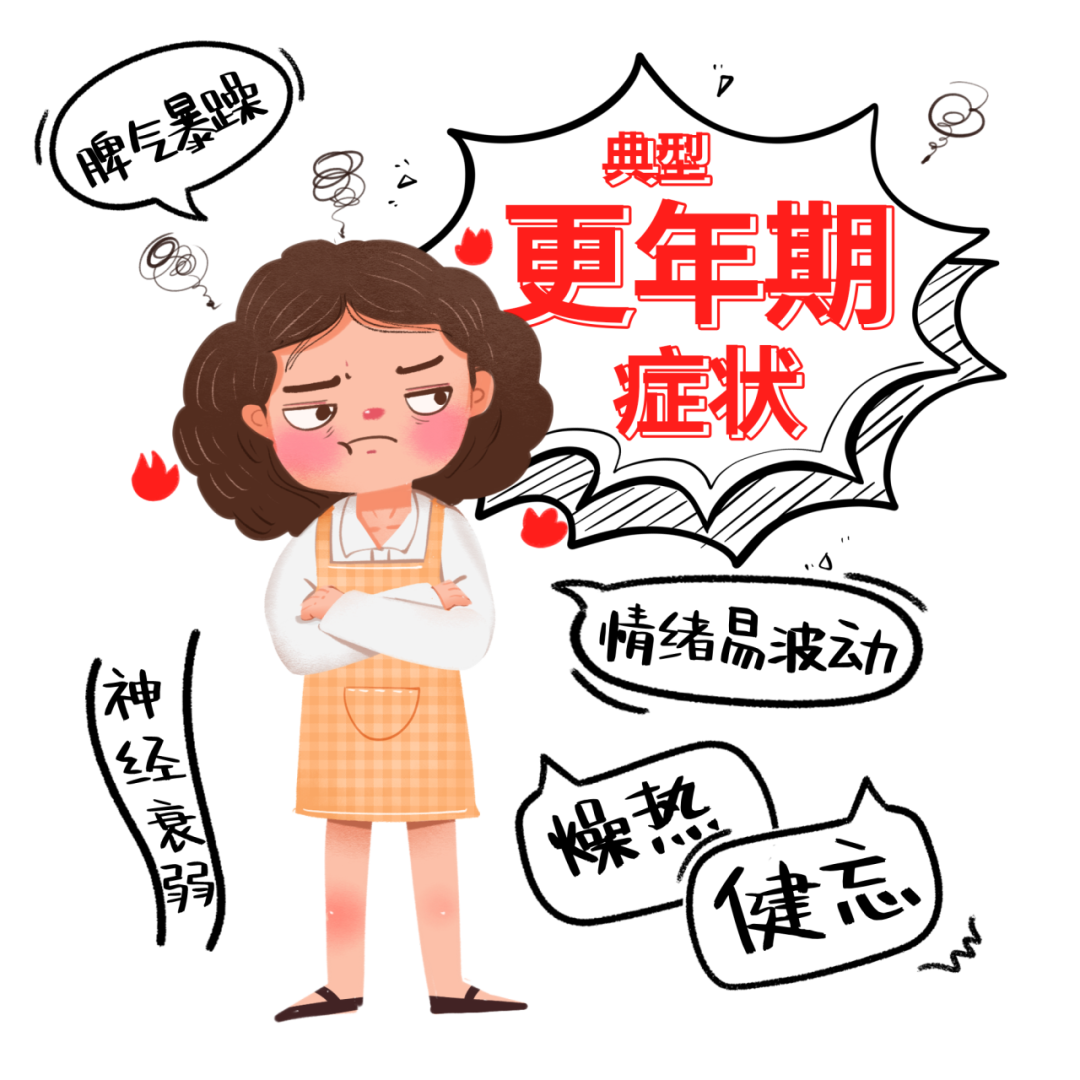 情绪变化:易激惹、焦虑、抑郁,严重影响日常工作及生活。据统计,围绝经期妇女发生严重抑郁事件的风险是绝经前的三倍。基于容易出现情绪的不稳定,因此,更年期也被戏称为“第二青春期”。