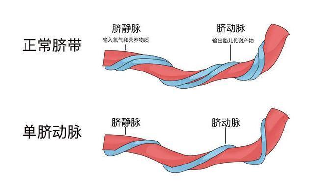 正常脐带有 3 条血管,分别是 1 条脐静脉和 2 条脐动脉。如果只有 1 条脐动脉就叫单脐动脉,一般在做 B 超检查时可以发现。