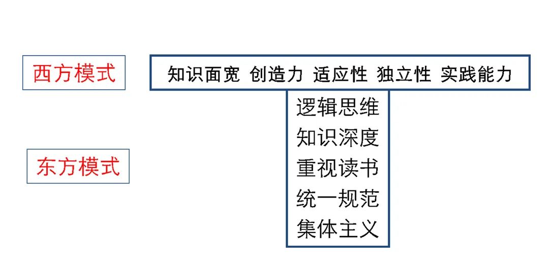 研究表明,西方人才培养模式注重这些特质:知识面、创造力、适应性、独立性和实践能力。东方人才培养模式注重的特质是:逻辑思维、知识深度、重视读书、统一规范和集体主义。而未来的人才可能是集东西方培养模式之长的像图钉一样的“T型”人才,既有广度,又有深度。