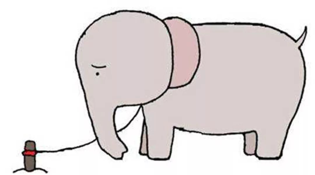 小象是被实实在在的链子拴住的,而大象却是被看不见的习惯的“链子”拴住的。