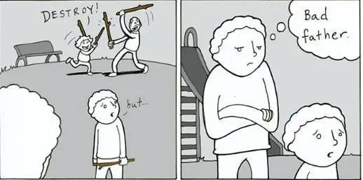 第二重,做孩子的朋友。放下老爹的架子,反而能和孩子更好地沟通。但往往父亲和孩子说一百句,依然抵不过同龄人说的一句。