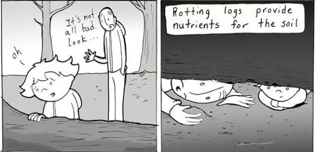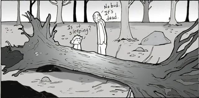 我便回应他,“没事的,死亡不是糟糕的事。看,大树死了之后,他们的根还会给土壤补给营养。”