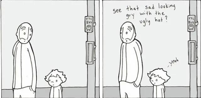 我便问他:“你看到路边那个垂头丧气、戴着丑帽子的人吗?”儿子点了点头。