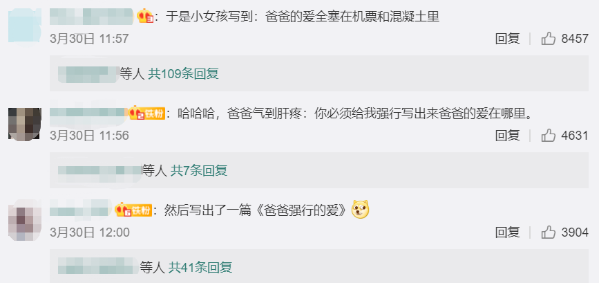 让这位年轻爸爸“气到变形”的原因,其实是女儿在作文中只歌颂妈妈的爱,却只字未提爸爸的爱。
